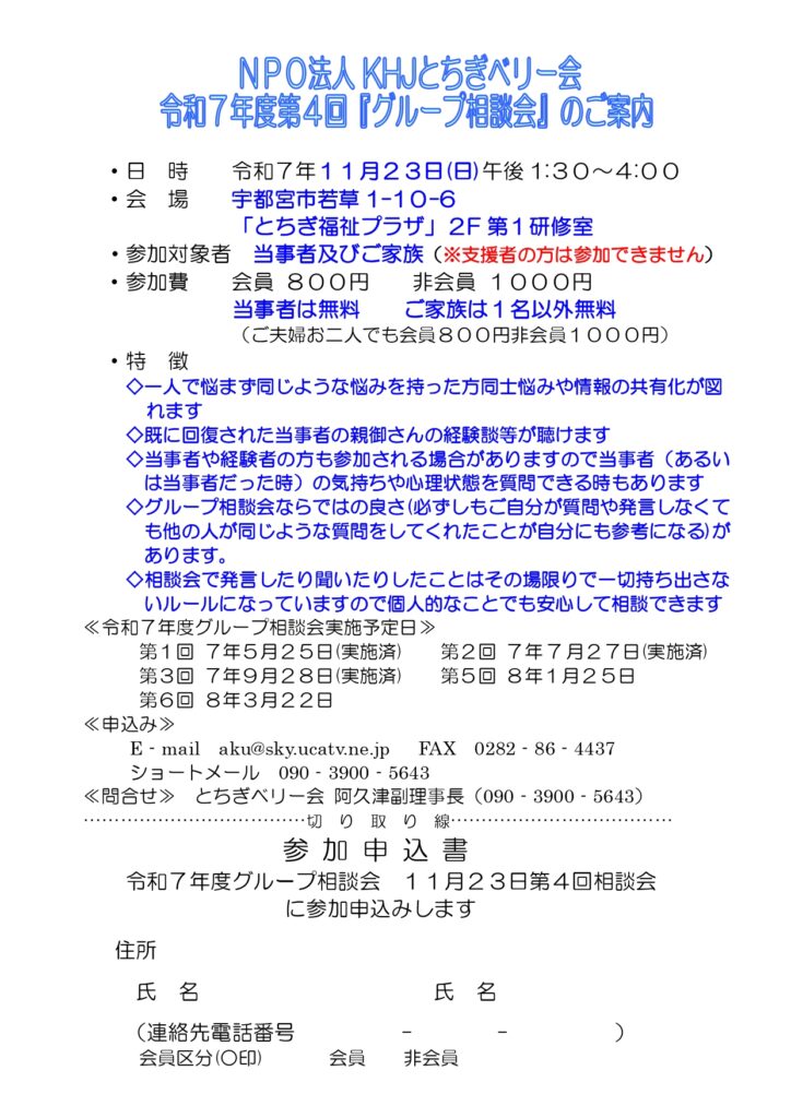 令和7年11月23日(日) 令和7年度第4回グループ相談会