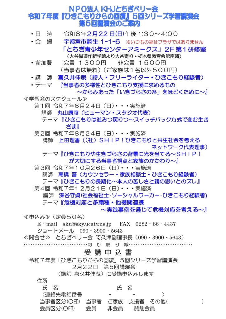 令和8年2月22日(日) 令和7年度第5回学習講演会