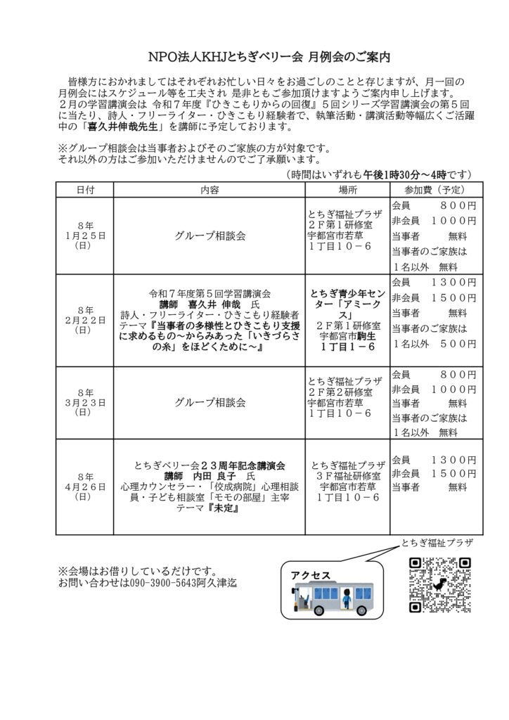 令和8年1月25日(日) 令和7年度第5回グループ相談会
